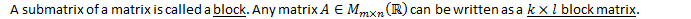 Given two matrices we want to multiply, we can split them into appropriate sized blocks and then just multiply using the blocks instead of the entries.